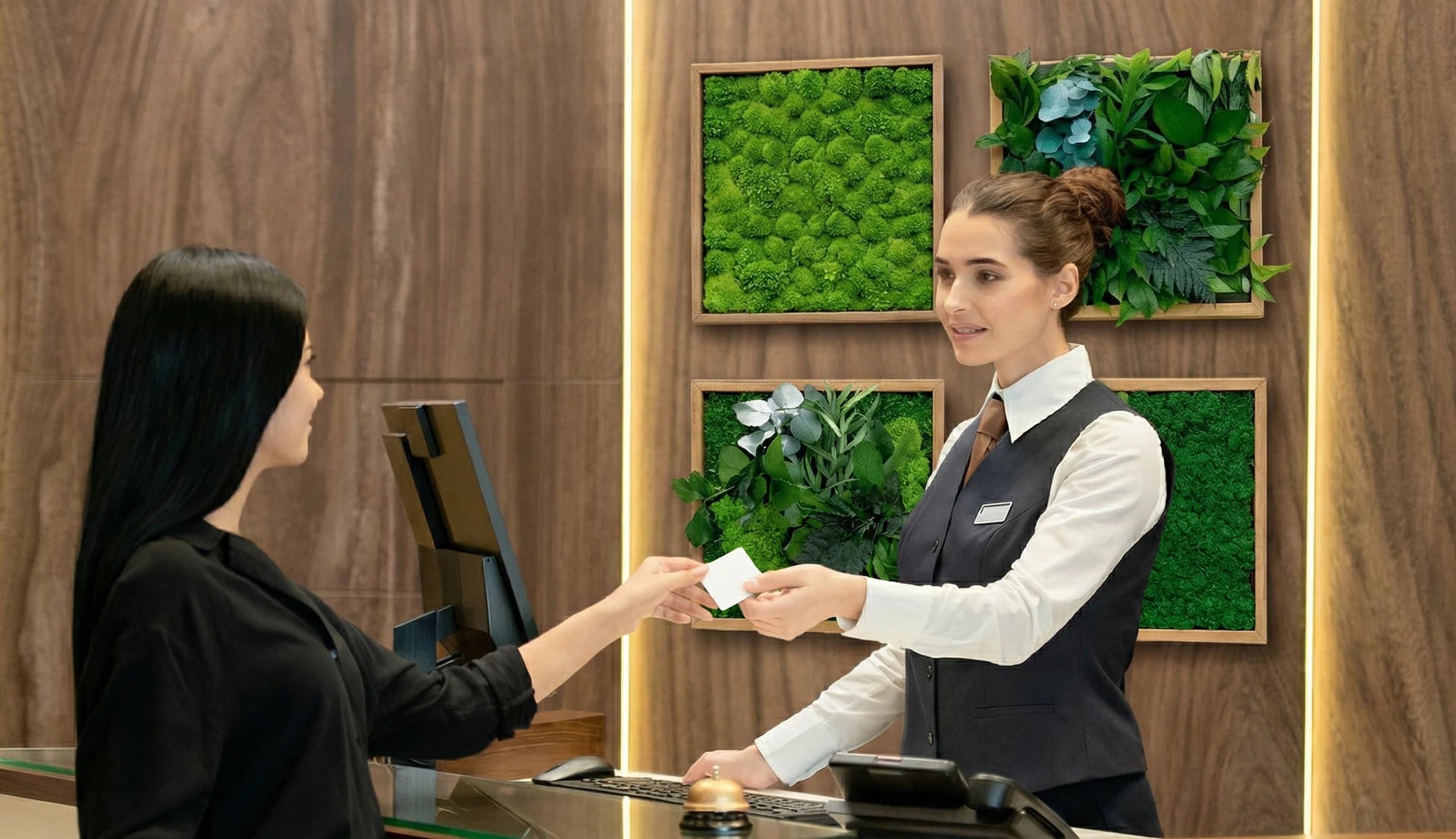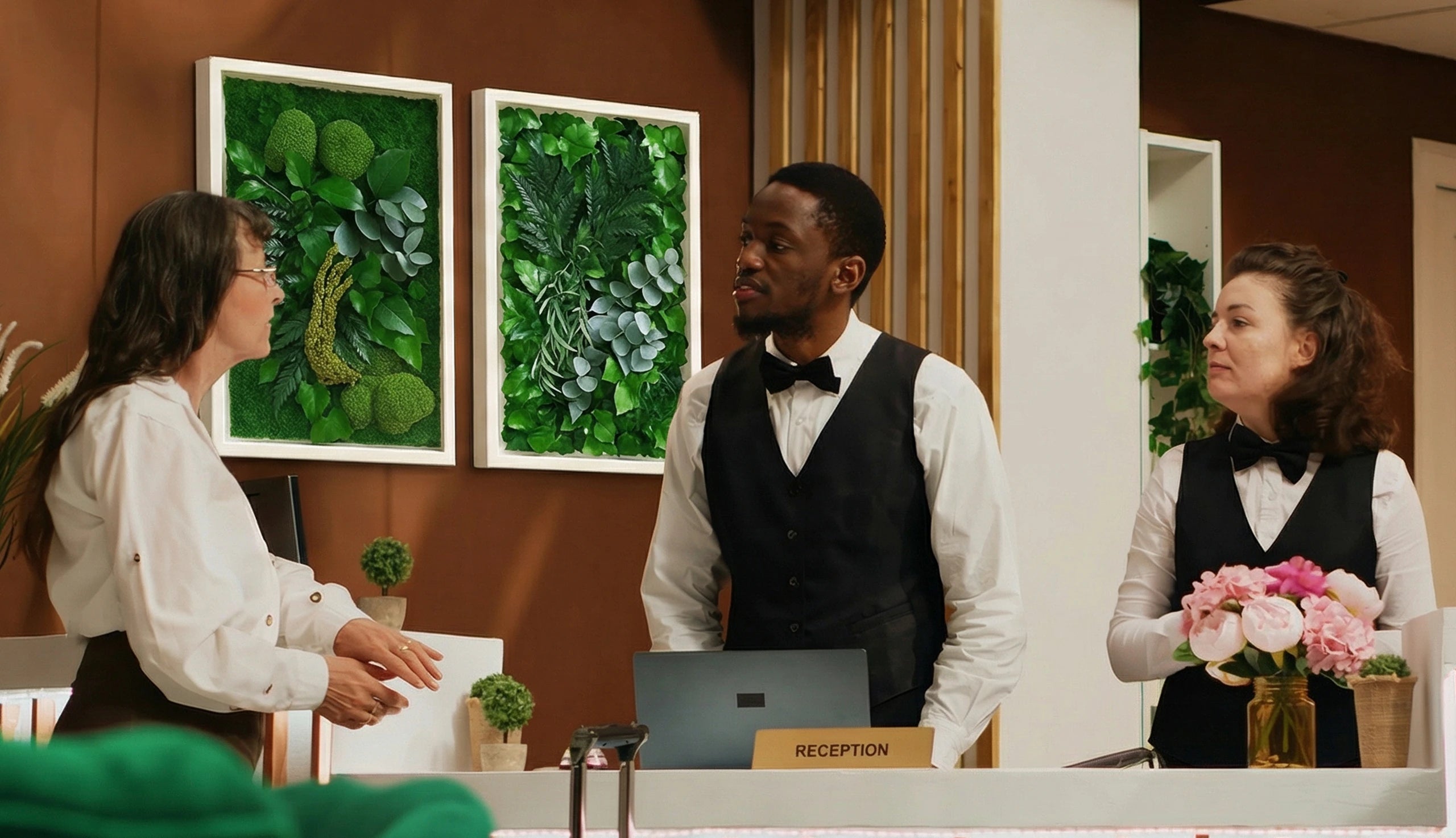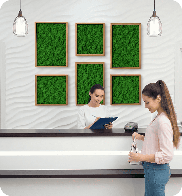 Le tableau végétal est un cadre décoratif ; le mur végétal intérieur habille tout ou partie d’un mur pour une signature visuelle et un confort acoustique renforcé.