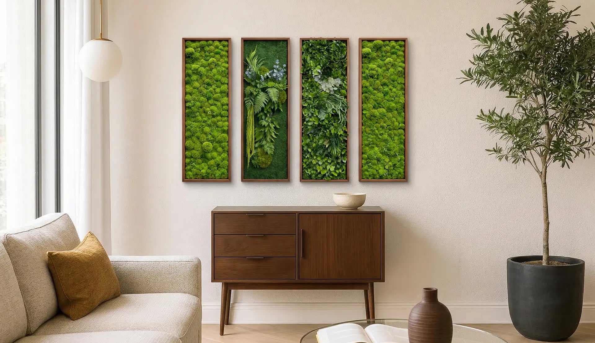 Les végétaux stabilisés sont de vraies plantes dont la sève a été remplacée par une solution 100 % naturelle. Ils conservent souplesse et couleurs sans arrosage ni lumière directe. Idéal pour un tableau végétal stabilisé, ce procédé offre une décoration végétale durable avec un simple dépoussiérage. Parfaits en bureaux, commerces et habitats : ambiance visuelle, acoustique adoucie, rendu authentique sans les contraintes du vivant.