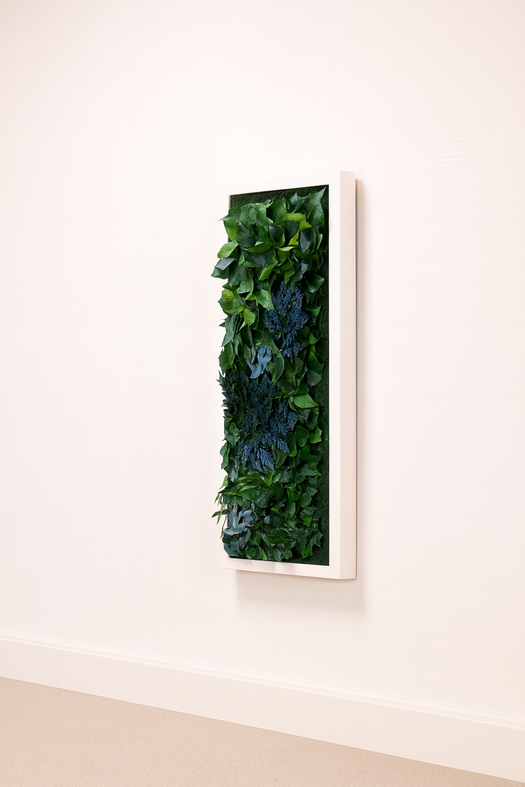 ** Im Gegensatz zu lebenden Pflanzen, die Licht zum Gedeihen benötigen, können unsere Gemälde und Wände im Dunkeln bleiben, ohne dass ihre Optik beeinträchtigt wird. Sie fügen sich perfekt in jeden Raum ein, auch in solche mit weniger Licht. Mit einem konservierten Pflanzengemälde oder einer konservierten Pflanzenwand entscheiden Sie sich für eine ästhetische und praktische Lösung, die Ihr Interieur bereichert und Ihr Leben vereinfacht.