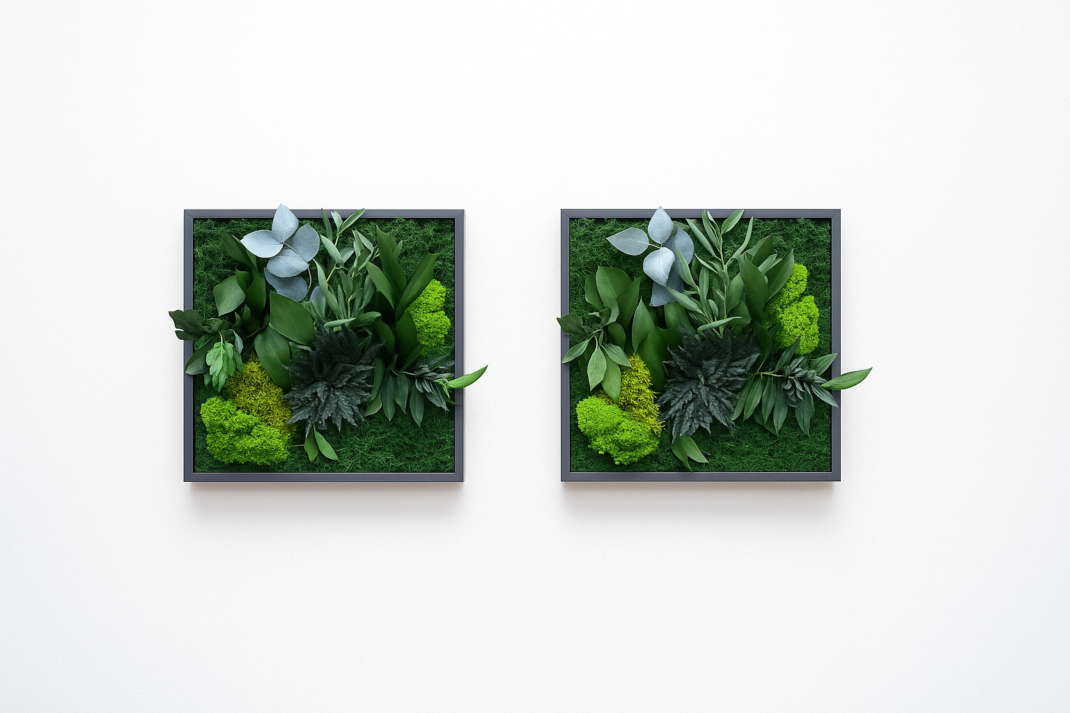** Im Gegensatz zu lebenden Pflanzen benötigen unsere konservierten Pflanzenwände und -gemälde keine besondere Pflege. Vergessen Sie Gießen, Beschneiden oder Umtopfen. Genießen Sie einfach die Schönheit der Natur ohne Aufwand.