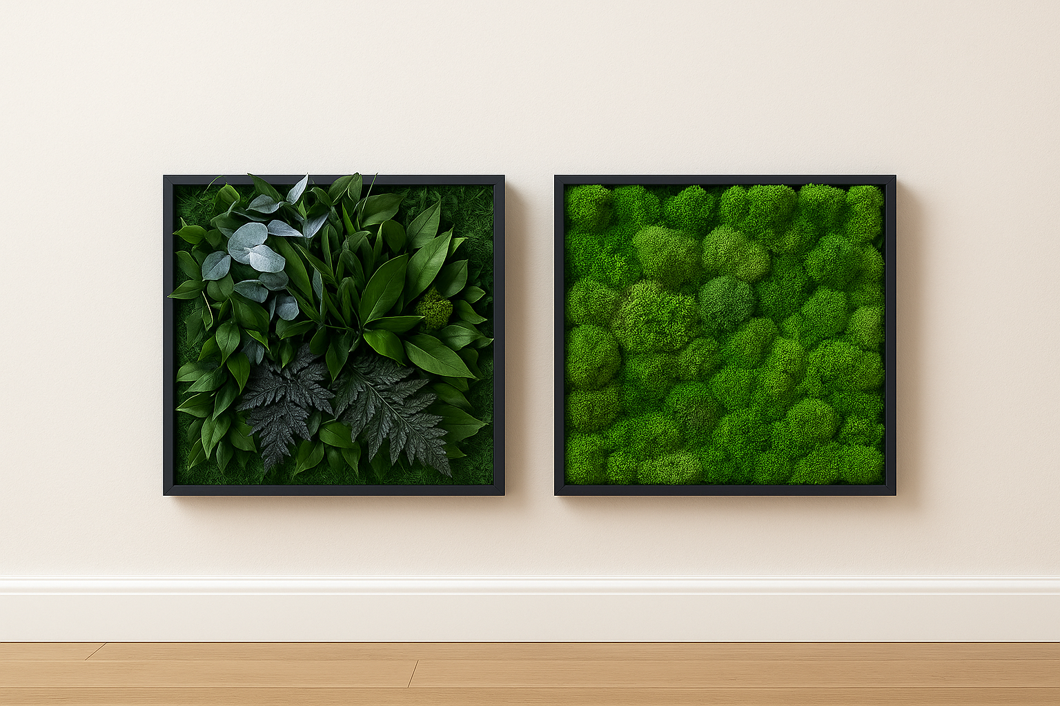 ** Im Gegensatz zu lebenden Pflanzen benötigen unsere konservierten Pflanzenwände und -gemälde keine besondere Pflege. Vergessen Sie Gießen, Beschneiden oder Umtopfen. Genießen Sie einfach die Schönheit der Natur ohne Aufwand.